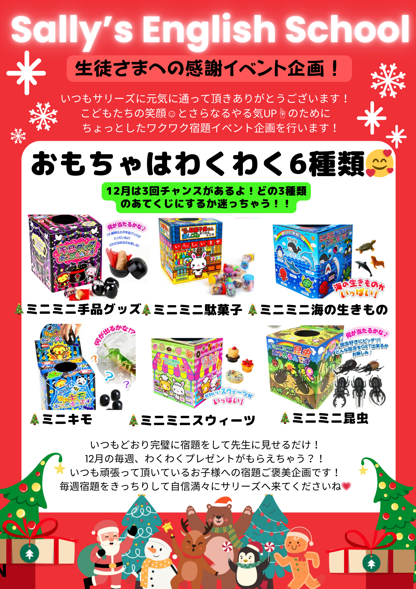その他、ムービーナイト・フォニックスの集中講座・ハロウィン・クリスマス・ママパパ向けの英語指導講座など、楽しく学べるイベント講座が毎月たくさん!