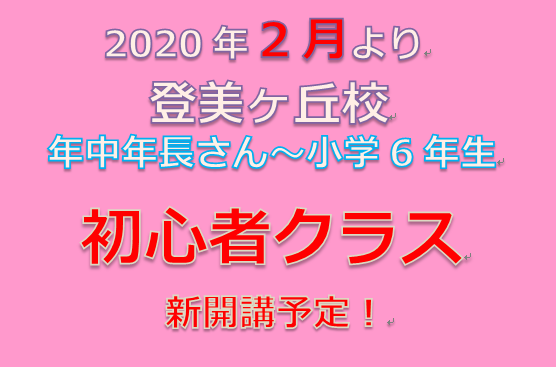 2020年2月スタート!!初心者クラス(幼稚園から小6)新開講予定!!生徒募集中!