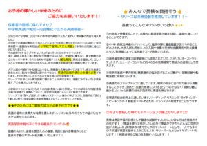 🌷高校生&大学生ボランティア 募集のご案内🌷 サリーズイングリッシュスクールでは、高校生と大学生のボランティアを募集しています。 大好きな英語を活かし、子どもたちの学びをお手伝いしてみませんか? 高校生や大学生になると、座りながらの英語の勉強が多くなるかもしれません。 これまで座学で学んできた英語を、ネイティブやバイリンガルの先生と話したり、 英語のレッスンを聞いたりしながら、実際に使ってみませんか? いま、英語が全くできなくても大丈夫です!! 1日短時間のみでもお気軽にお申込みください☺ 🍀対象者🍀 🌷サリーズイングリッシュ卒業生&外部生の高校1年~3年生、大学1年~4年生 🌷英語が好きで、英語を使いたい、勉強したい方 🌷子どもとの関わり方や、子どもへの教育に関心がある方 🌷英語の学校に興味がある方 🍀注目ポイント🍀 […]