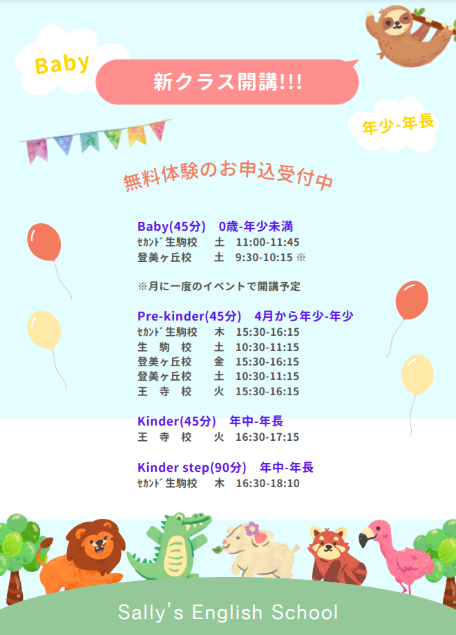 サリーズ以外のお子様、英語を一度も習ったことのないお子様も大歓迎です♪