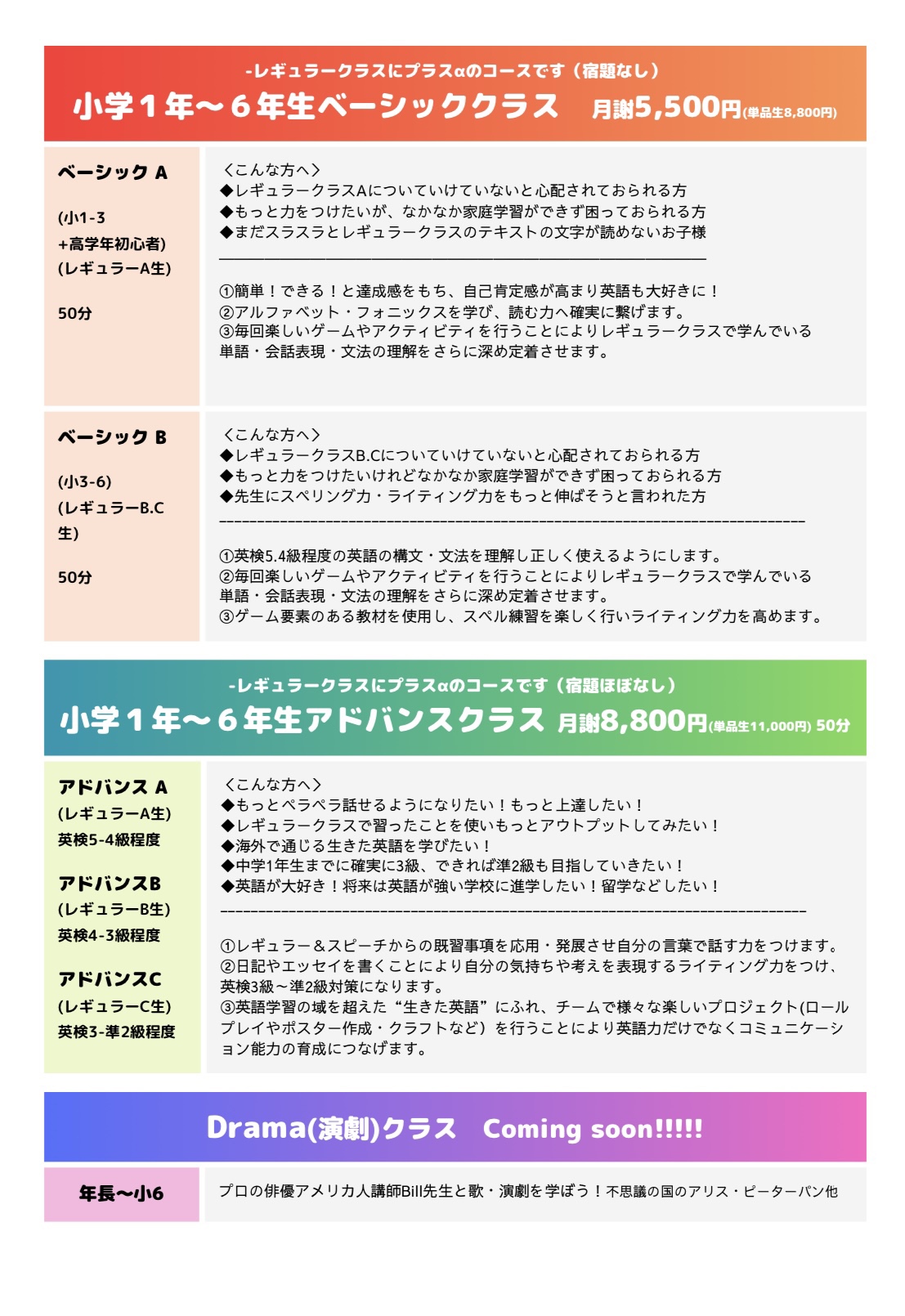 対象者:年中~小6まで(英語初心者・経験者問いません)