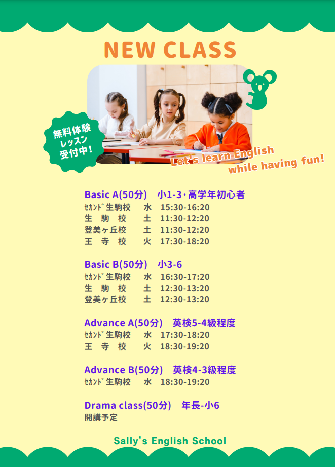 サリーズ以外のお子様、英語を一度も習ったことのないお子様も大歓迎です♪