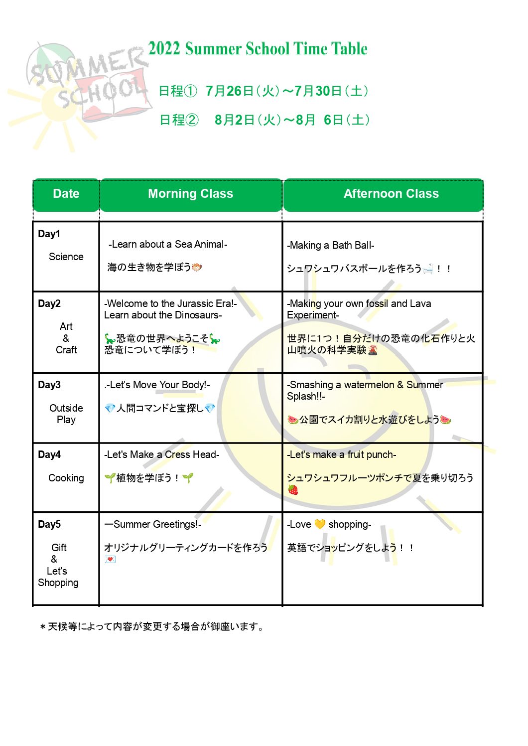 土曜日クラス 7/9, 7/16, 7/23, 8/20, 8/27, 9/3, 9/10, 9/17, 10/1, 10/8 全10回
