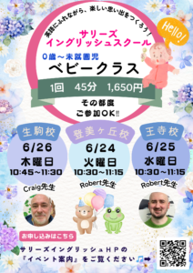 ※エリザベス先生の出産に伴い、2025年4月から、ロバート先生が王寺校のベビークラスを担当してくださることになりました。