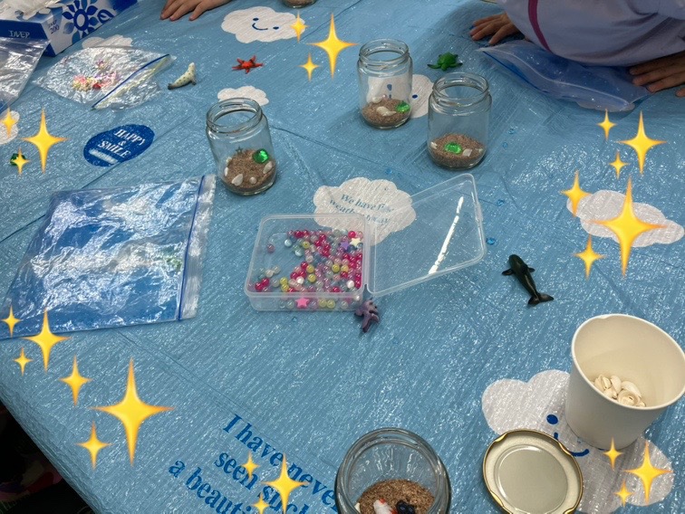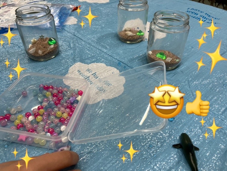 そのあとはお待ちかねの、自分だけの海を瓶の中に作るレッスン♪