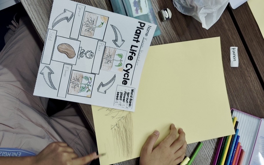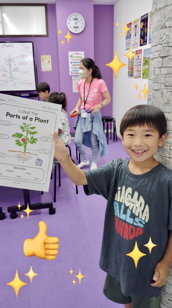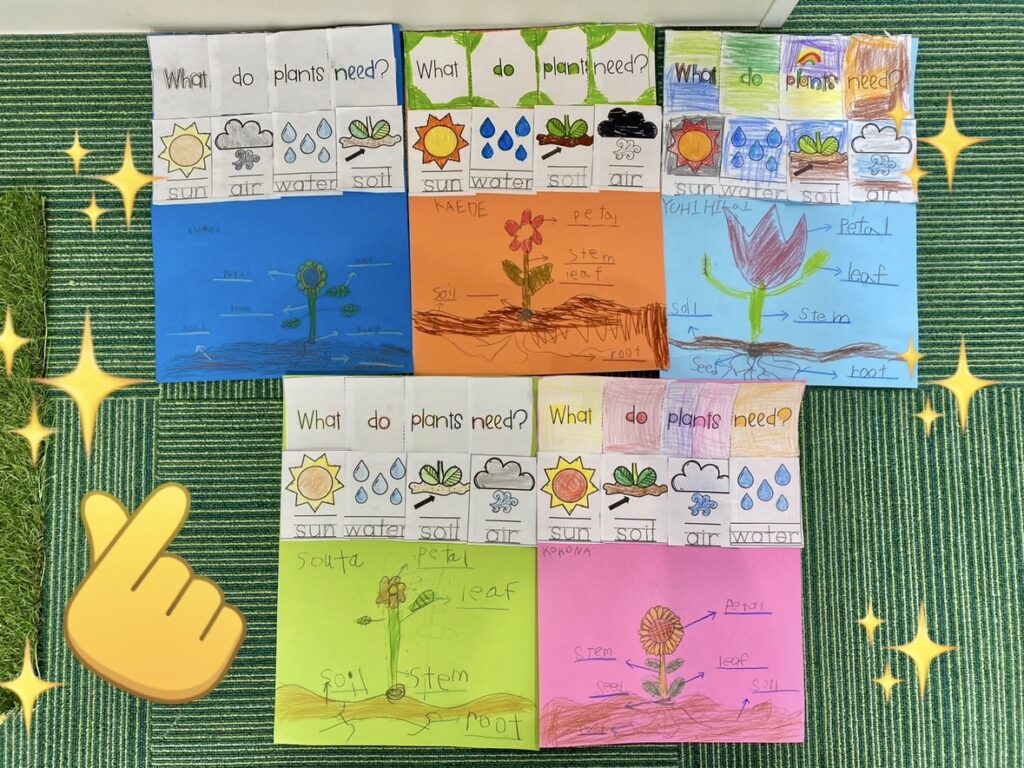 午前中は、植物の名前や育て方を英語で学びながら、「育てる楽しさ」や「命のふしぎ」に触れていきました。