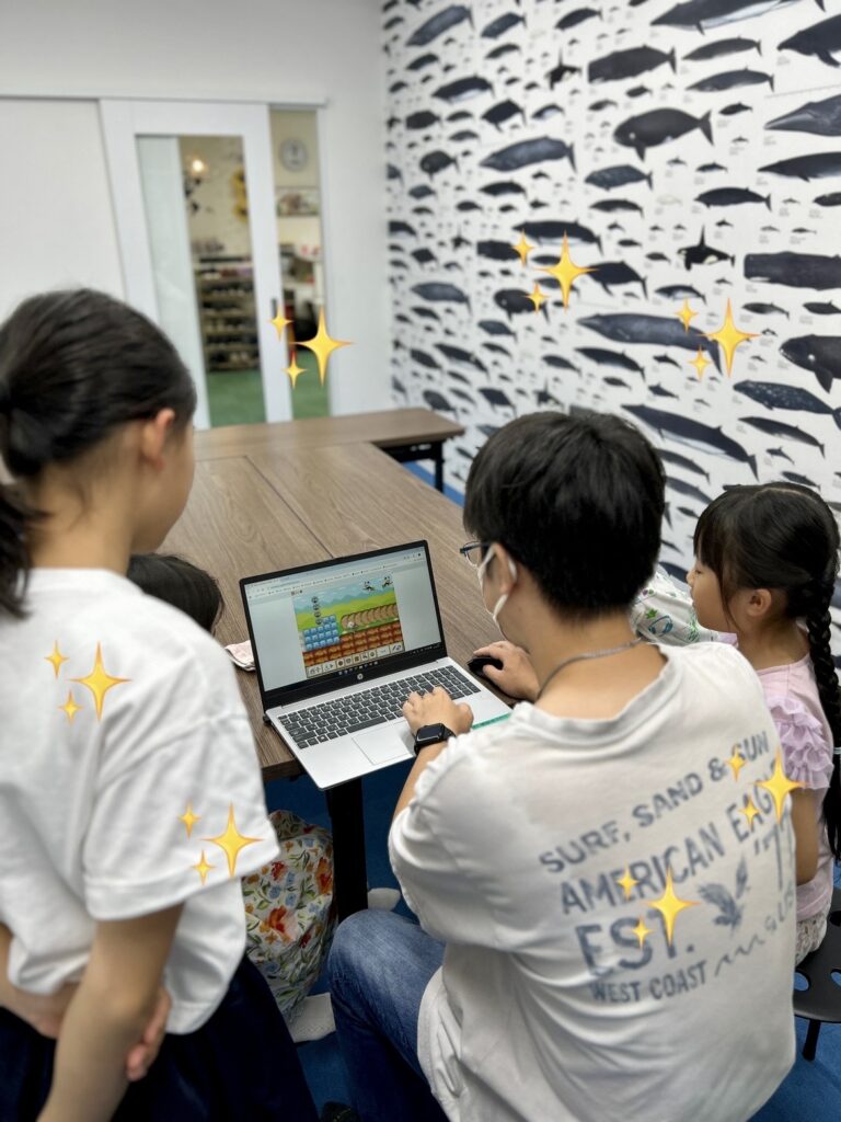 午後は、自分たちで作ったゲームのステージを実際にプレイ🎮✨みんなすごい集中力で真剣そのものでした。
