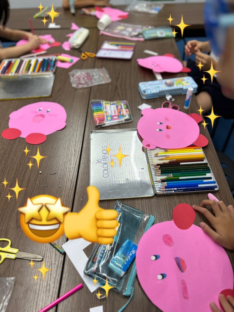 そのあとのクラフトでは、小さいこどもたちも、とっても上手にハサミやのりを使って、それぞれの個性あふれるカービィを作ることができましたよ😍👏