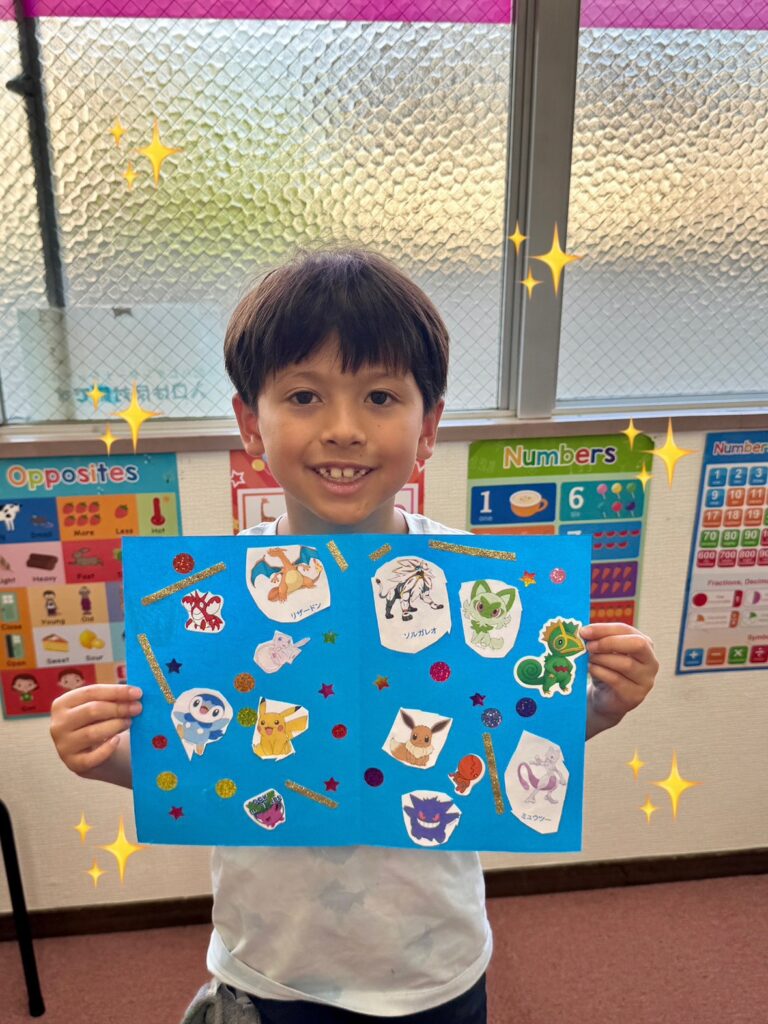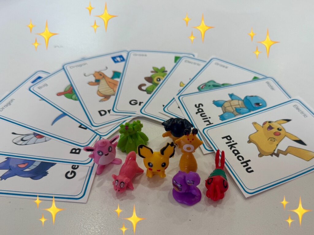 午前中は、ポケモンフラッシュカードを使って、英語で、ポケモンの英語名の意味や