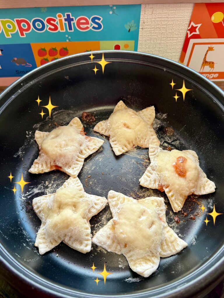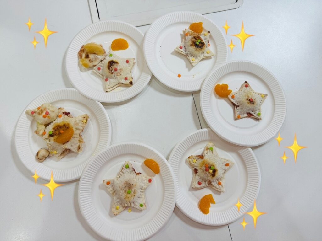 いろんな大きさのお星さまの型で、生地を切り抜き、中にフルーツを入れたり、後から乗せたり