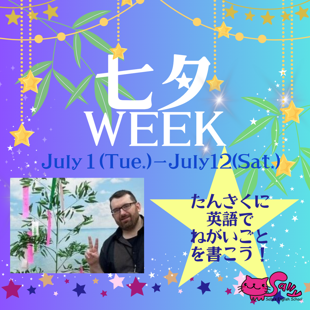 🌟🌟願い事叶うかな!?🌟 🌟🌟七夕ウィーク🌟🌟 🌟7月1日(火)~7月12日(土)🌟 去年に引き続き、今年も七夕に向けて、英語で短冊を書いてもらいます🌟 レッスンで先生が見本の文を教えてくれます。それらを少し書きかえて作ってもらえますので安心してくださいね! 去年の願い事は叶っていますか?叶っていたらぜひ教えてくださいね!😊🌟