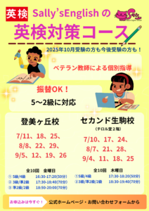 10月の英検受験を目指している方だけではなく、今後の受験をお考えの方、英検だけではなく文法力をつけたい方も是非ご参加くださいね😊♬