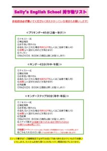 👇こちらの画像<キンダー45分 /キンダーステップ90分>の持ち物をご覧ください